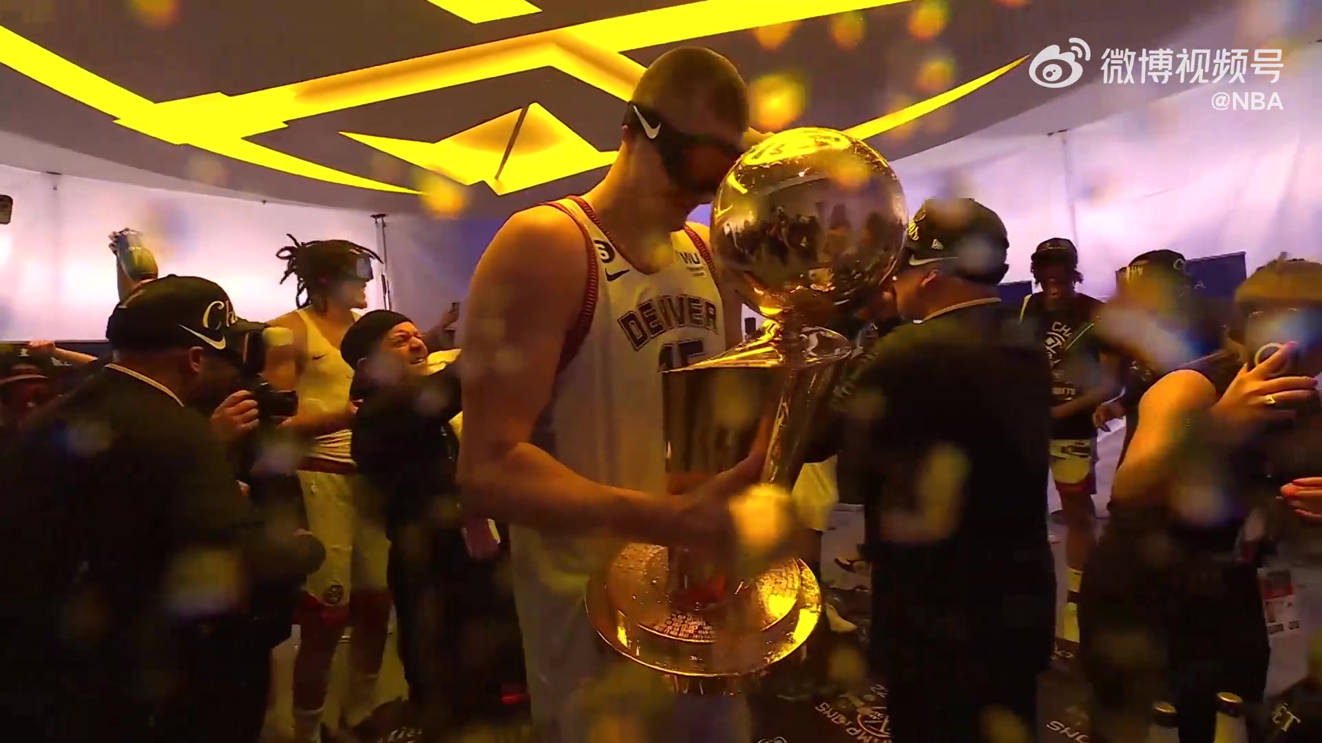 戴好护目镜掘金众将赛后准备开始香槟大战